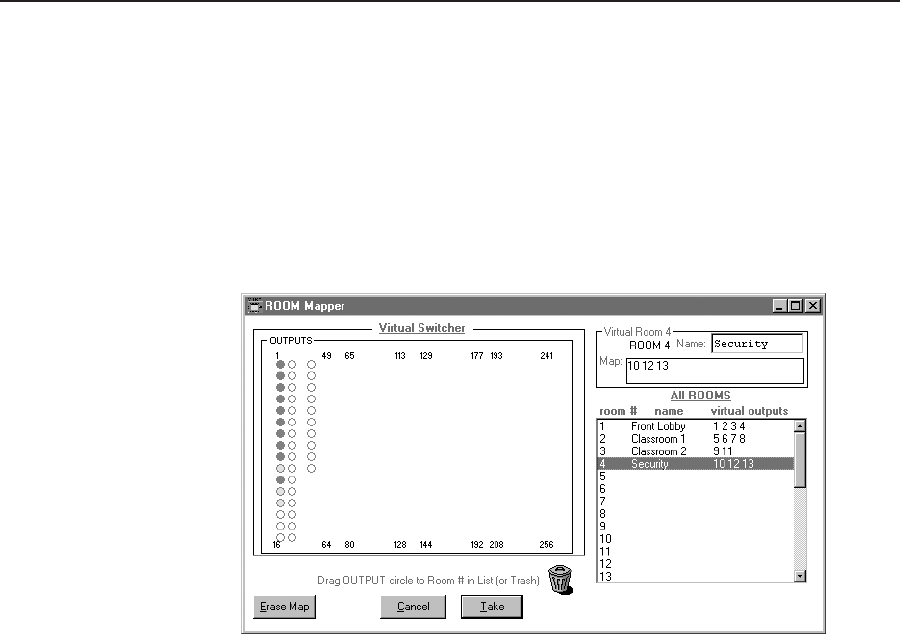 the Virtual Switcher Out field to a different room in the list. Drag the output