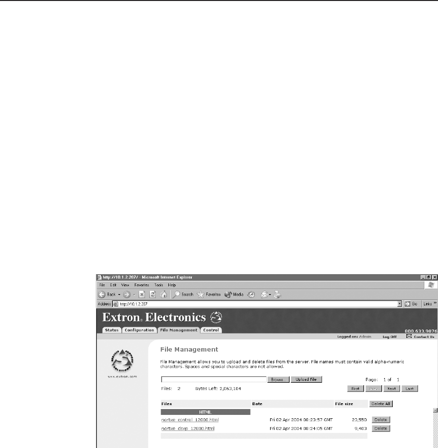 To delete files such as HTML pages from the Matrix 12800 or to upload your