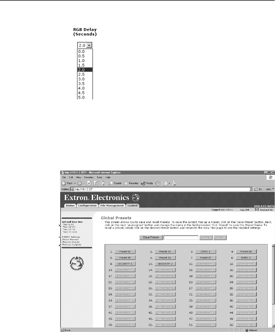 4. Click the RGB delay drop box. A drop-down scroll box appears (figure 5-15).