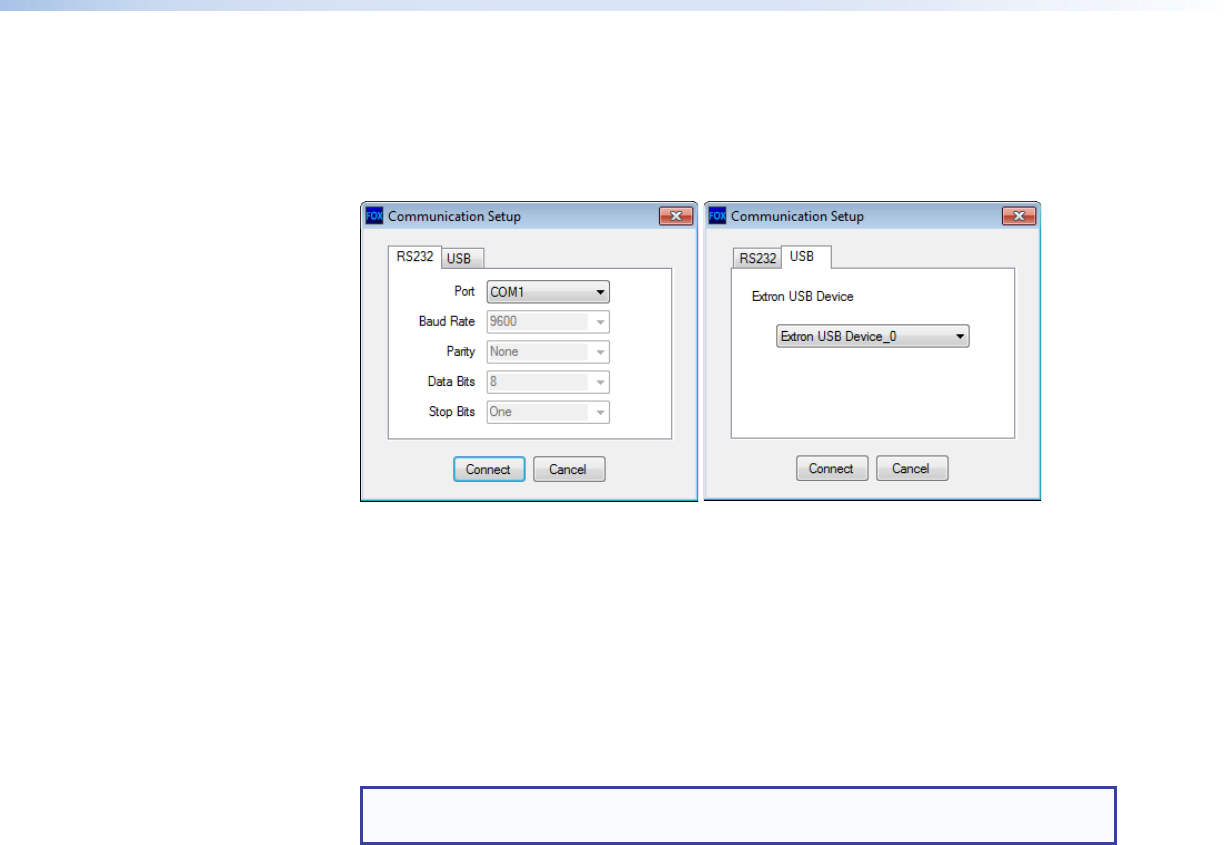 1. Open the FOX Extenders Control Program. The Communication Setup window