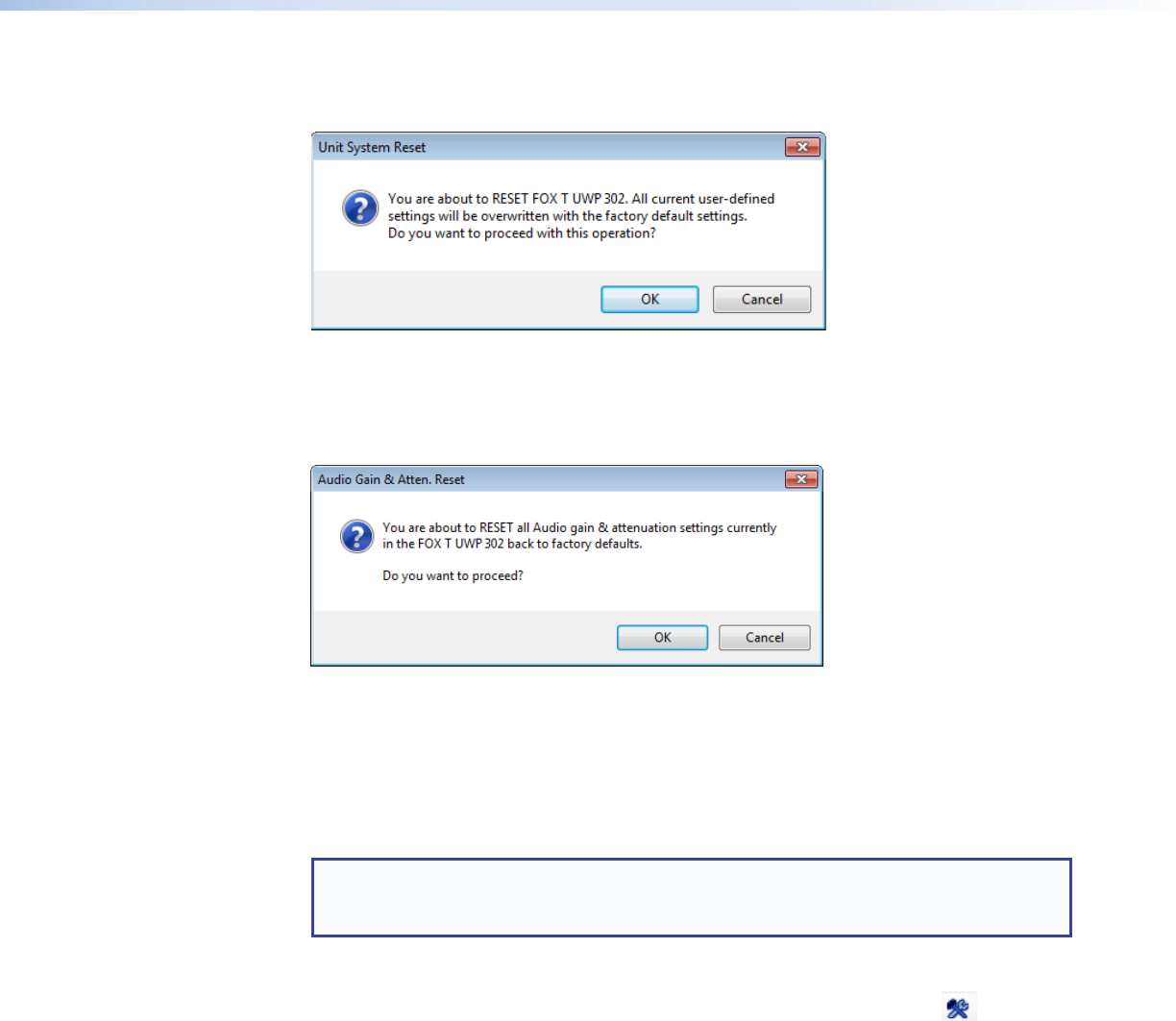Figure 18. Audio Gain and Attenuation Reset Dialog Box