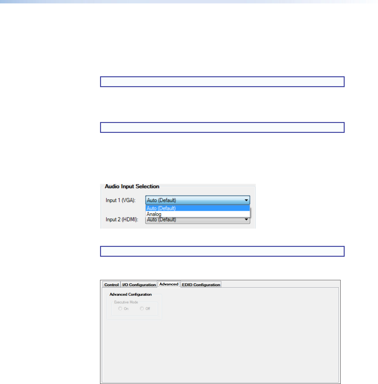 NOTE: Default setting: Audio Input Selection is Auto for all inputs.