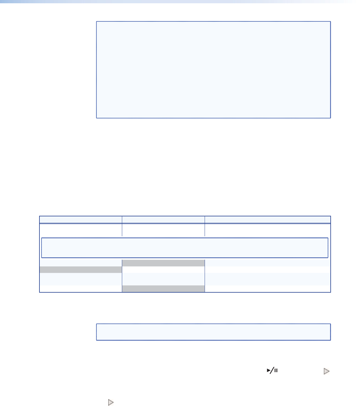 • Play — This command can be from the front panel Play/Pause ( ) button, the Play ( )