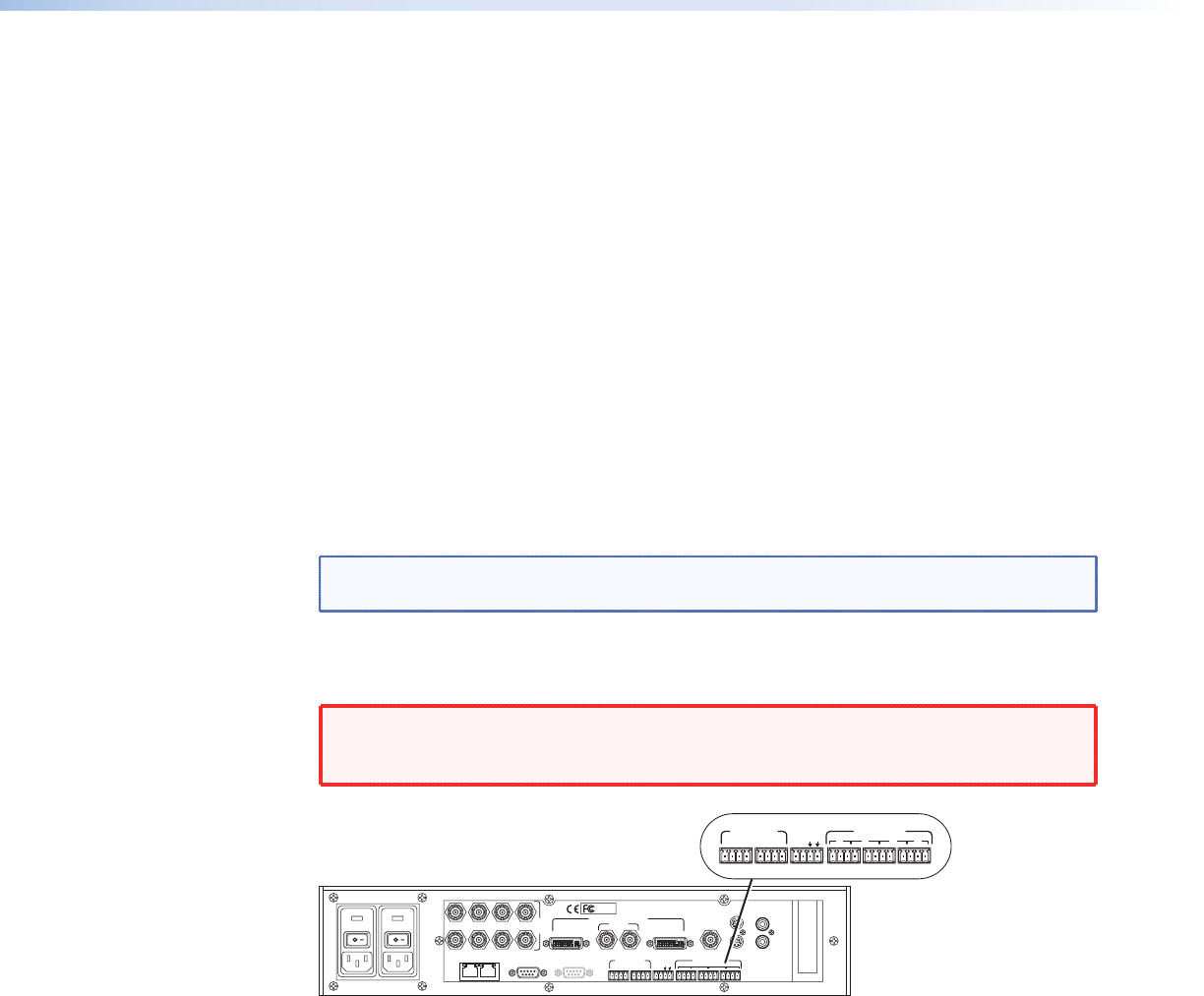 WARNING: 12 VDC is always present on the inputs and relays Power port when the