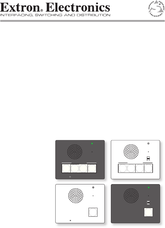 Introduction, cont’d Features • Two-way, half-duplex voice communications over an IP network • Compatibility with IP Intercom-enabled MLC 226 IP MediaLink Controllers (IPI 101 AAP and IPI 104 AAP) • Backlit, configurable Push To Talk buttons • Integrated speaker and microphone • Three-position switch to adjust speaker volume levels (IPI 101 AAP and IPI 104 AAP only) • LED indicator to show when the room is being monitored • Four space and 2-gang Architectural Adapter Plate (AAP) opening mounting • Connectio
