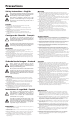 Precautions Safety Instructions • English This symbol is intended to alert the user of important operating and maintenance (servicing) instructions in the literature provided with the equipment. This symbol is intended to alert the user of the presence of uninsulated dangerous voltage within the product’s enclosure that may present a risk of electric shock. Caution Read Instructions • Read and understand all safety and operating instructions before using the equipment.