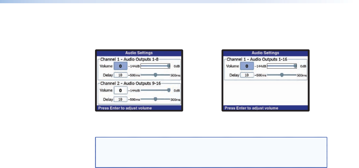 The Audio submenu (see figure 15) provides controls to set the volume and audio delay