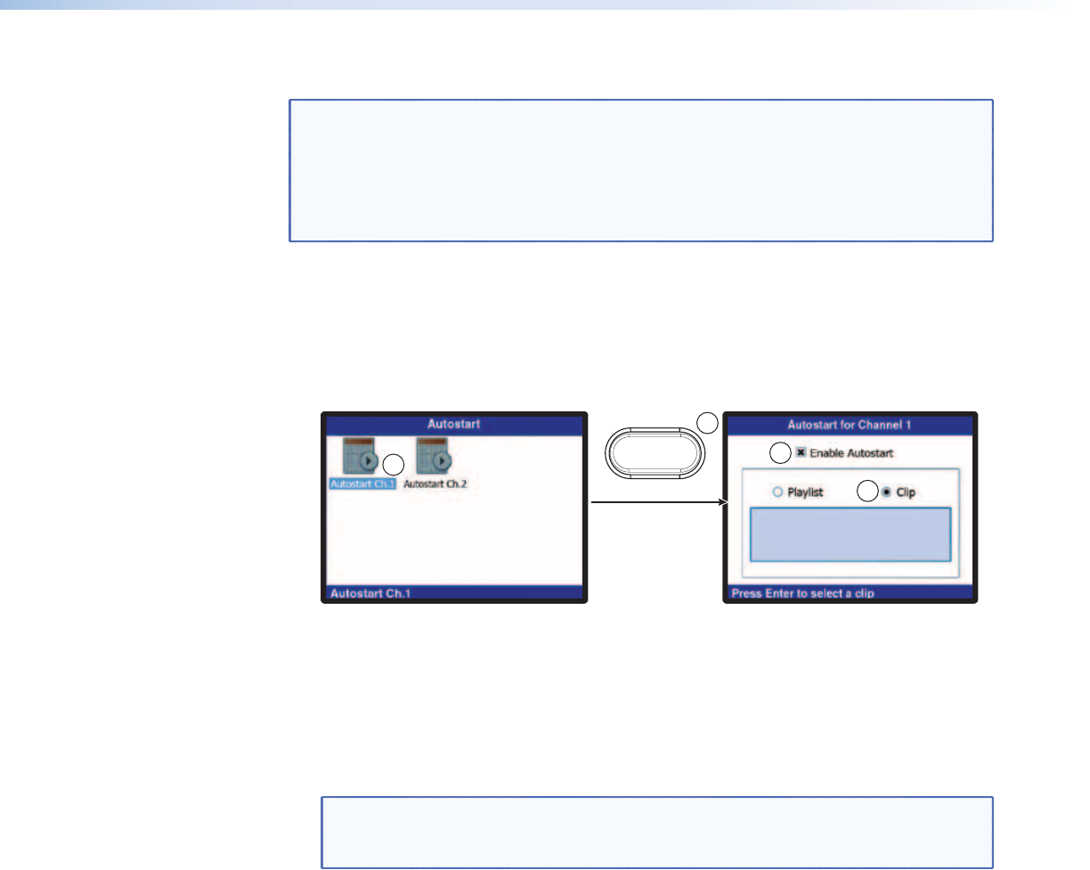 The Autostart feature sets a specified clip or playlist to automatically start playing for