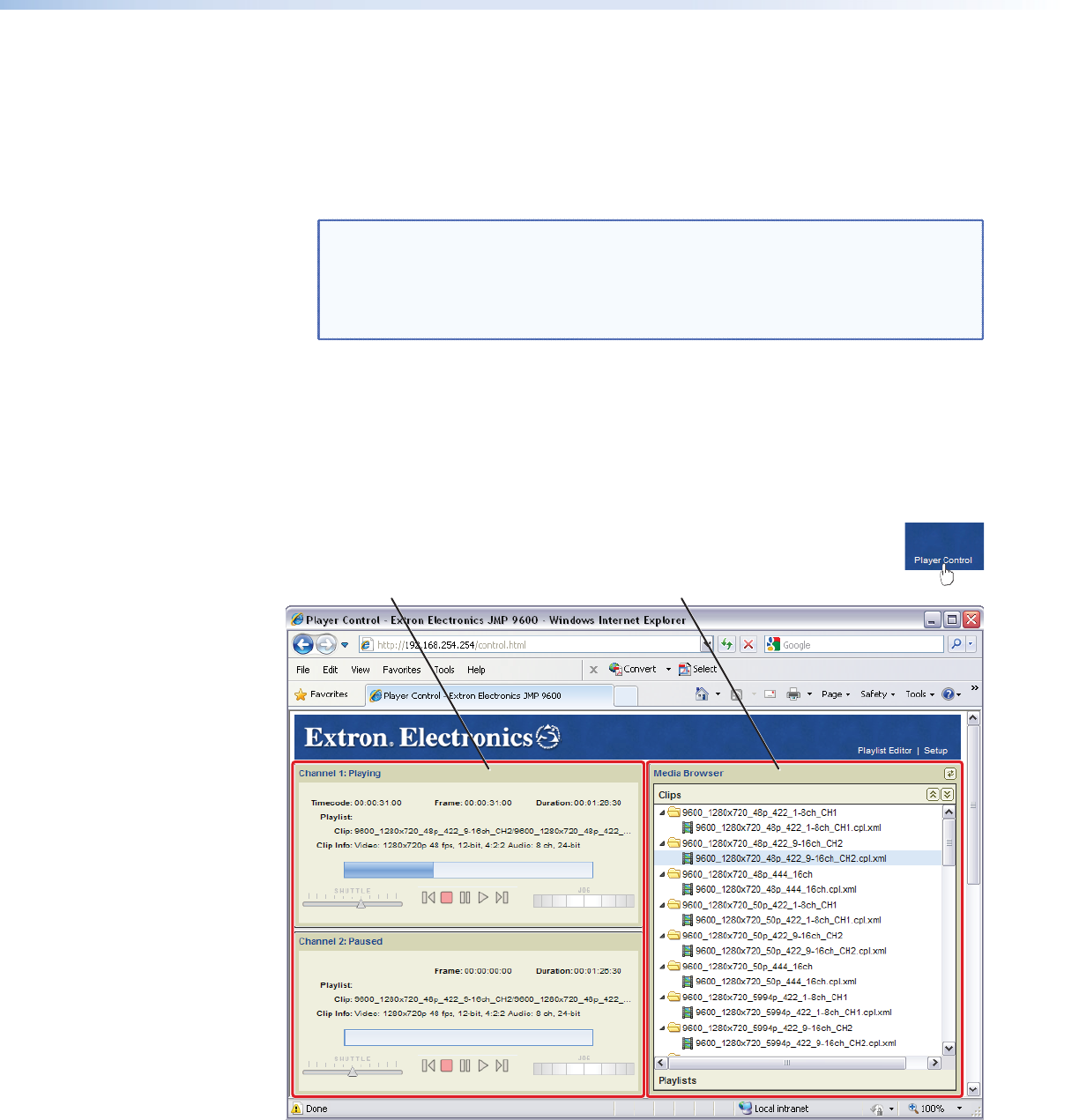 The Player Control page (figure 37) is the default startup page, appearing when you initially