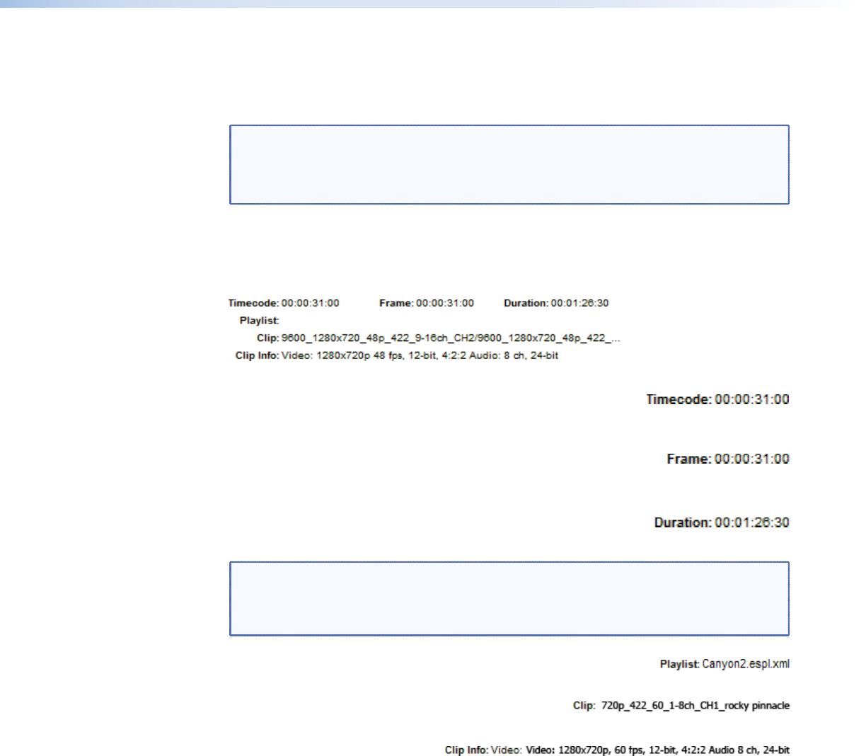 currently loaded playlist or clip. This is a static display only.