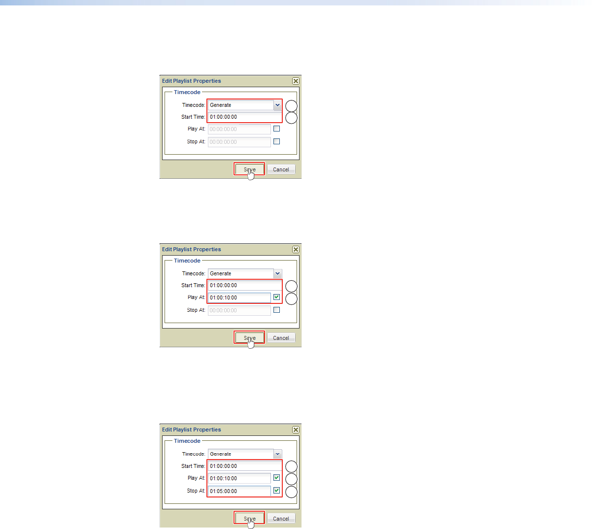 Figure 70 shows using the Edit Playlist Properties dialog box to generate an LTC that starts at