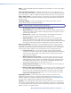 Command/Response Table for SIS Commands (continued) Command ASCII Command Response (Host to Unit) (Unit to Host) Additional description Audio input gain and attenuation NOTE: The set gain (G) and set attenuation (g) commands are case sensitive. Set input audio gain to +dB value Example: Set input audio attenuation to -dB value Increment gain Example: Decrement gain Example: Read input gain X#*X*G InX#•AudX&] 1*2G In01•Aud+02] InX#•AudX&] Set input 1 audio gain to +2 dB.