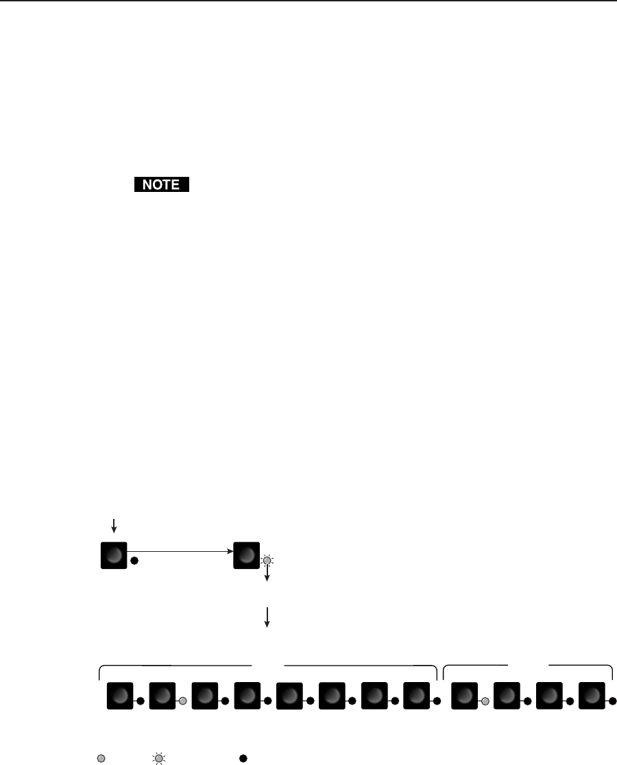 = lit LED, = blinking LED, = unlit LED.