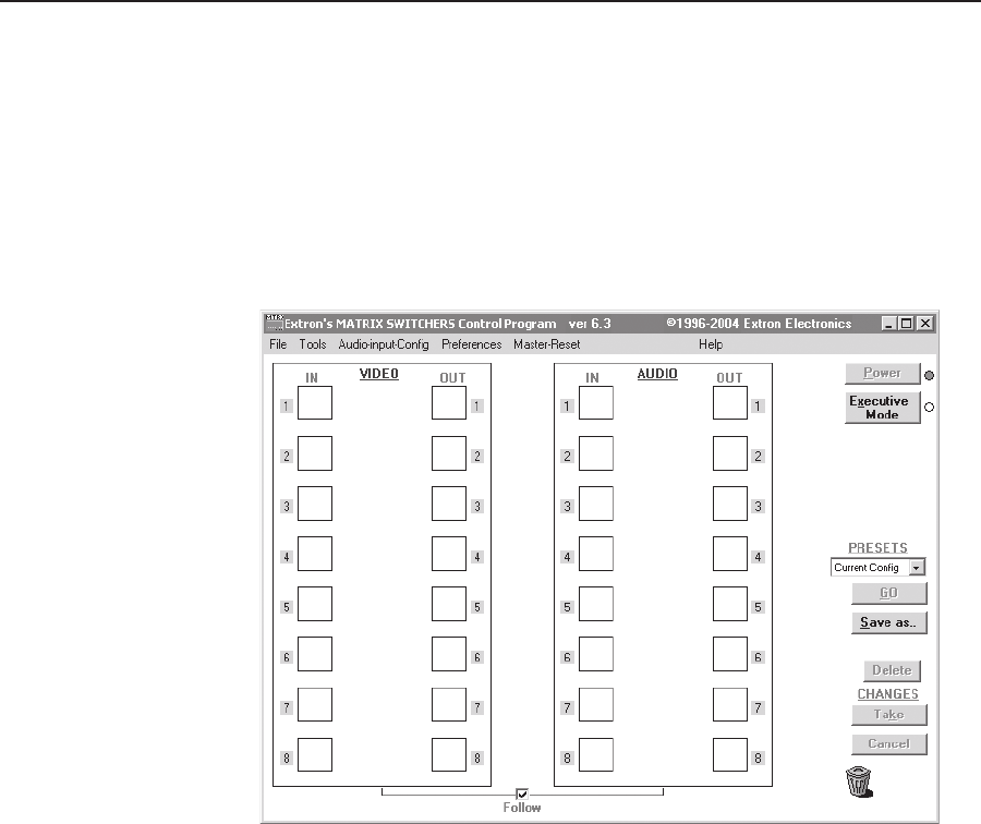3. The Extron Matrix Switchers Control Program window (figure 4-7 and