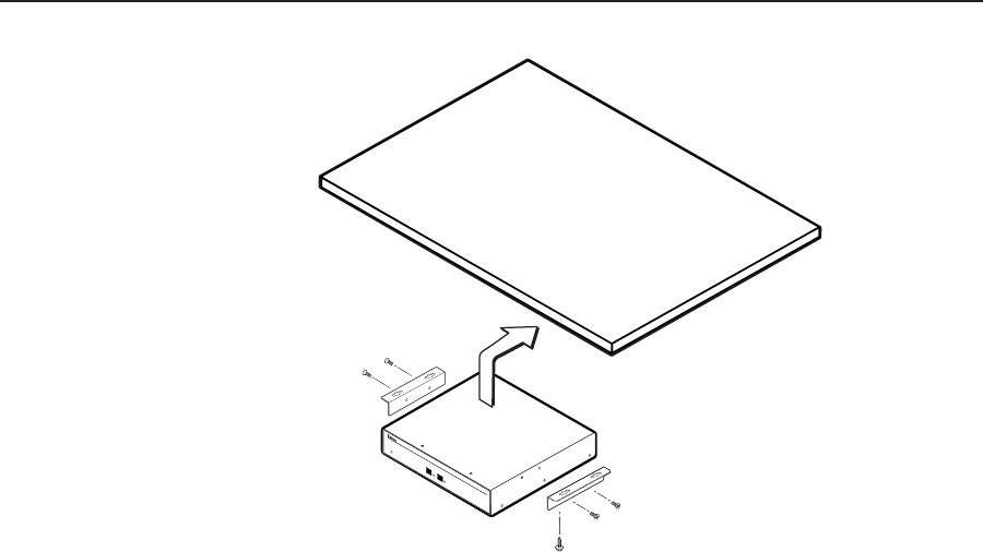 2. Hold the switcher with attached brackets against the underside of the desk or