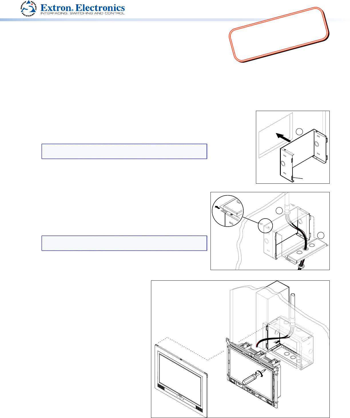 The Extron BB 1000M back box is used to mount an Extron TLP 1000MV TouchLink™ panel in a wall. This Installation