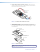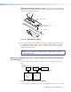 For installations in a rectangular ceiling grid, replace half of the rectangular tile which was cut in half in step 2. Install the supplied T-rail crosspiece, then place the speaker on the grid and position it so that the speaker edges are hidden by the support rails and T-rails, as shown below. Extron FF 220T Ceiling Speakers Ceiling Tile Existing Ceiling Tile Rails T-rail Crosspiece (supplied) Figure 13.