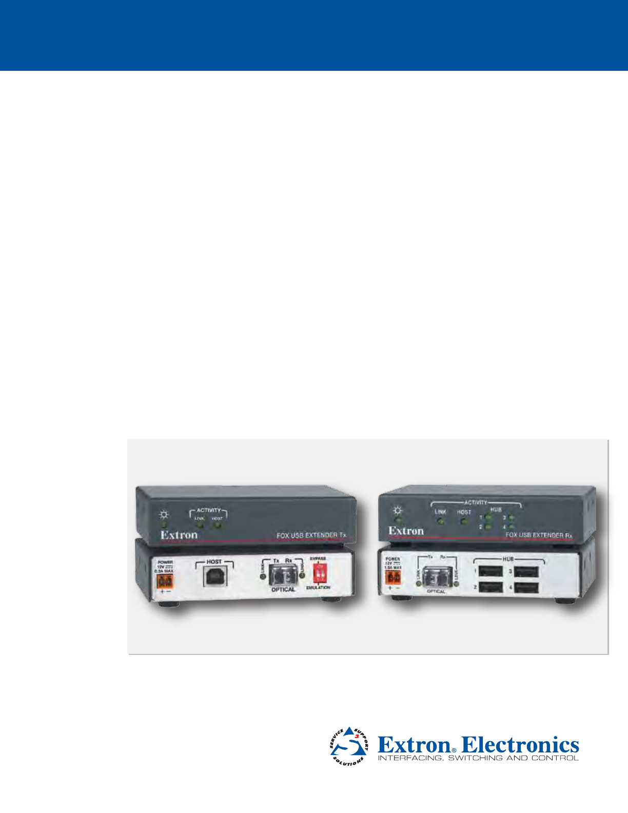 Extron FOXBOX Tx DVI Plus Extron FOX USB Extender Tx Fiber Fiber Optic Transmitter Fiber Optic Extender for USB Peripherals RM DIO AU I-D DV 32 R ALA RS-2FIBE R OVE 1 Tx UT INP 2 Rx s I Plu OX Tx DV XB FO ER POW X 12V MA 1.0A DVI Extron FOXBOX Rx DVI Plus Rx LINK LINK Tx AL ST TIC HO OP R WE Fiber Optic Receiver POV AX. 12 M A 0.8 USB Fiber RM DIO 32 R ALA RS-2FIBE R OVE AU 1 Tx T 2 Rx TPU I-D DV PC MO OU s I Plu OX DE Rx DV XB FO ER POW X 12V MA 1.