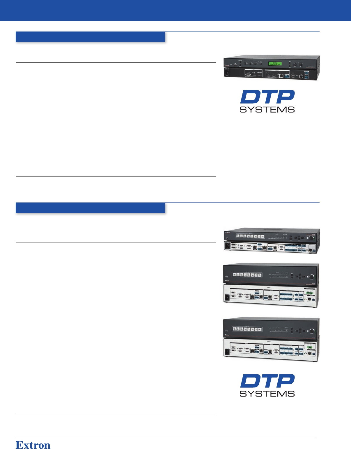 universal analog video inputs, and two Extron DTP230