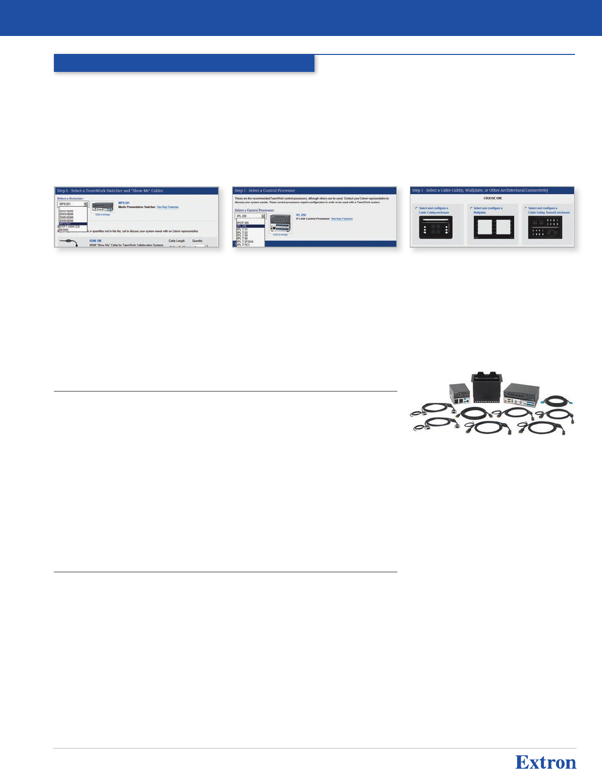 The online TeamWork System Builder quickly steps you through the creation of custom TeamWork system. Choose from a wide range of Extron products to select