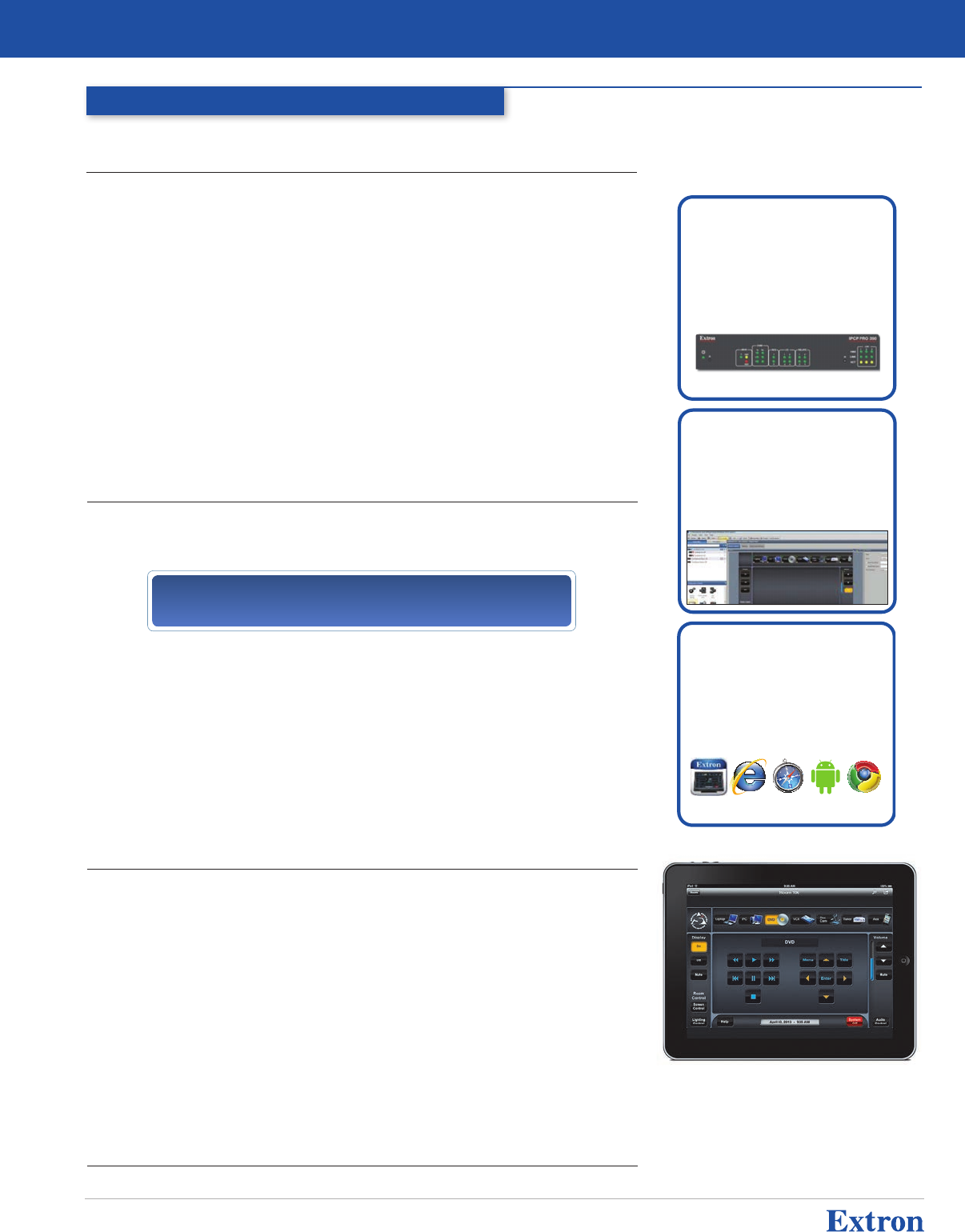 • Save money by using low cost Extron Apps