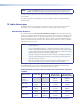 NOTE: When the TP input is from a low resolution unit (MTP SV or MTP AV), the signal assignment depends on the position of signal jumpers in the transmitter and receiver (see the MTP AV Series User Guide). Jumpers in Mono Position (Default) RJ-45 Connector Side Pins: Pin 568 A Wire Color 568 B Wire Color Composite Video MTP Signal S-video MTP Signal RGB Video, MTP, VTT/VTR Signal 1 Whitegreen Whiteorange Reserved Chroma (C) + Red/ V.Sync + 2 Green Orange Reserved Chroma (C) – Red/ V.