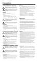Precautions Safety Instructions • English This symbol is intended to alert the user of important operating and maintenance (servicing) instructions in the literature provided with the equipment. This symbol is intended to alert the user of the presence of uninsulated dangerous voltage within the product’s enclosure that may present a risk of electric shock. Caution Read Instructions • Read and understand all safety and operating instructions before using the equipment.