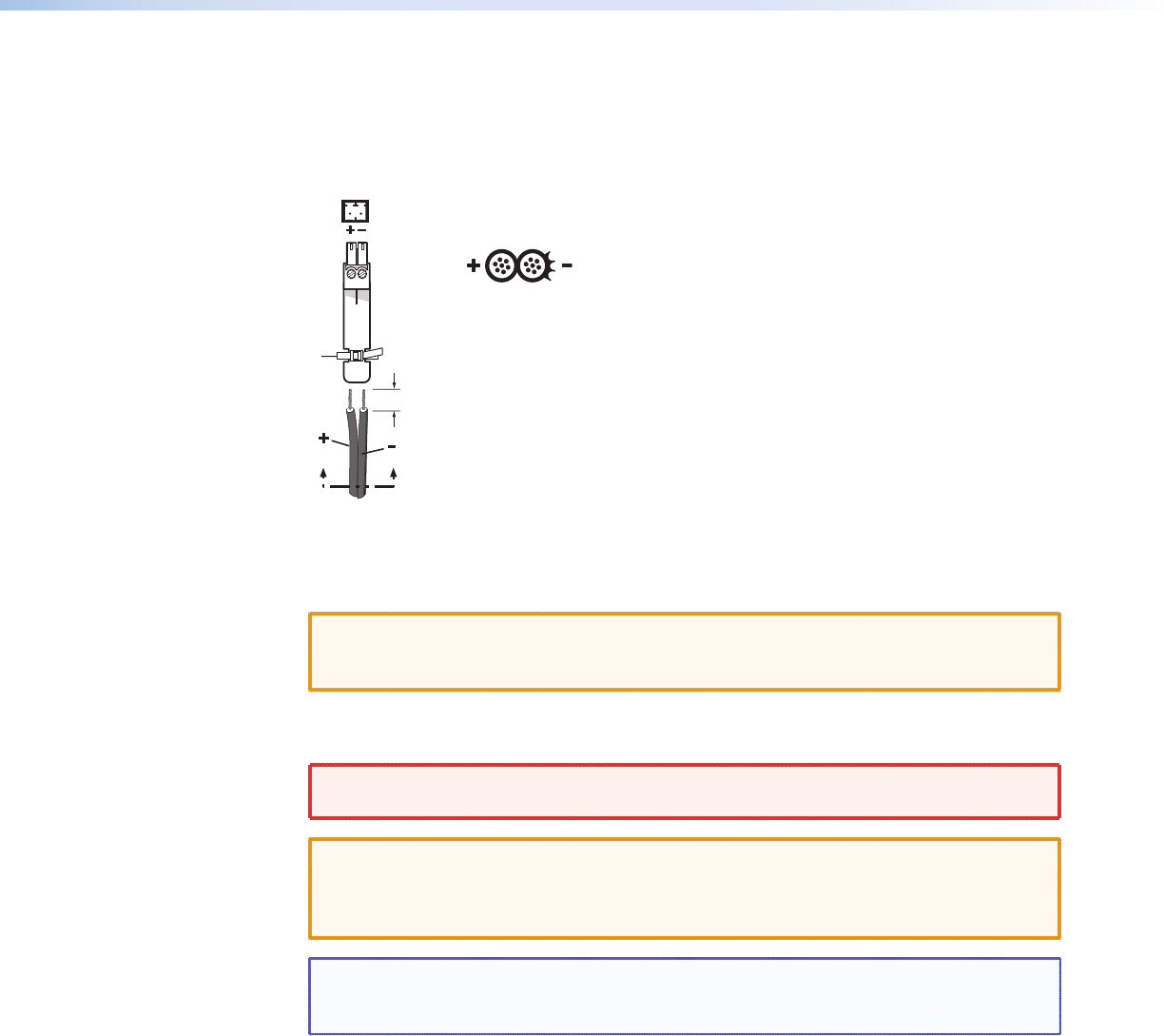 WARNING: The two power cord wires must be kept separate while the power supply is