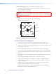 d. Test the controller configuration as follows: • Check that the MLC is controlling the projector and PVS 405D switcher, and outputs the correct image when switching inputs. • Check the projector power control (turn it off and on at the MLC). • Adjust the configuration as necessary. e. Adjust the audio input sensitivity as follows: • Ensure there is an audio source at each transmitter. • • f.