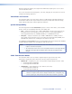 Command and Response Table for Transmitter SIS Commands Command ASCII Command Response (Host to Unit) (Unit to Host) Additional Description Request EDID and refresh rate switch positions Example: EStat} EdidMdrX!•VrateX@] EStat} EdidMdr15•Vrate2] Request EDID switch position Request Refresh rate switch position E2Stat} E3Stat} X!] X@] Switch status EDID switch is set to 15 (1080p) and the vertical rate switch is set to 2 (60 Hz).