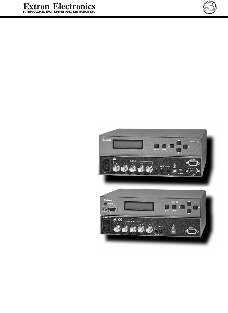 Chapter 1 • Introduction to the RGB 302/304 The Extron RGB 302/304 is a digitally controlled Universal Analog/ECL Computer-Video Interface. It can connect most computers to a video presentation device, such as a large screen projector or data monitor. The RGB 302/304’s SmartSave™ feature automatically selects sync settings and other parameters for a quick and easy setup.