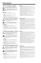 Precautions Safety Instructions • English This symbol is intended to alert the user of important operating and maintenance (servicing) instructions in the literature provided with the equipment. This symbol is intended to alert the user of the presence of uninsulated dangerous voltage within the product’s enclosure that may present a risk of electric shock. Caution Read Instructions • Read and understand all safety and operating instructions before using the equipment.