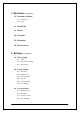 6.4 Option Setting 6.4.1 Answering Type 6.4.2 Language 6.4.3 DTR Service 6.5 Security Setting 6.5.1 PIN Code 6.5.2 Phone Lock 6.5.3 FDN Mode 6.6 Reset 6.6.1 Factory Reset 6.6.2 All Data 7 Network Service( see page 69 ) 7.1 Call Divert 7.1.1 All Calls 7.1.2 When Not Answered 7.1.3 When Busy 7.1.4 When No Service 7.1.5 Cancel All Divert 7.2 Call Wait 7.2.1 Active 7.2.2 Check Status 7.2.3 Cancel 7.3 Call Barring 7.3.1 All Outgoing 7.3.2 International 7.3.3 Int’ l Except Home 7.3.4 All Incoming 7.3.