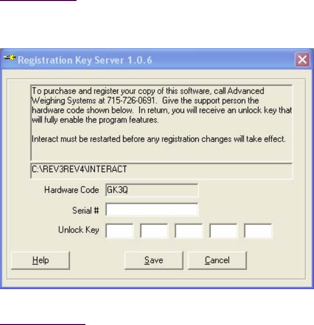 This Registration Key Server screen is used to software register the truck scale application. Call Fairbanks