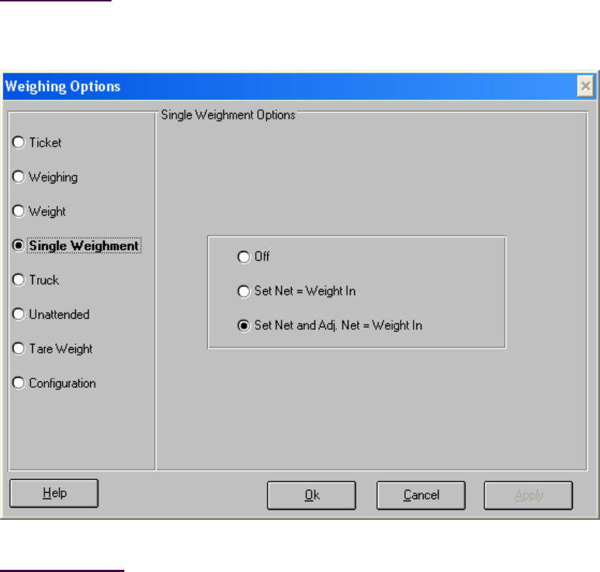 The Weigh Option screens contain parameters that modify the behavior of the ticketing process in the