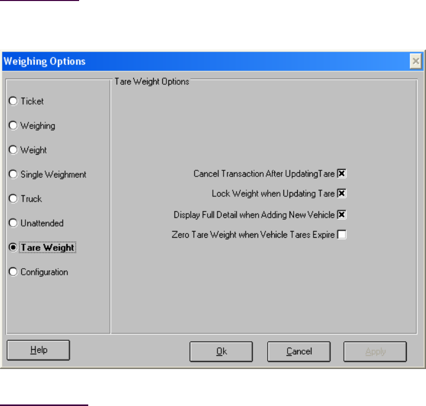 Weigh screen. The Tare Weight page contains parameters that control the updating of a truck tare weight.