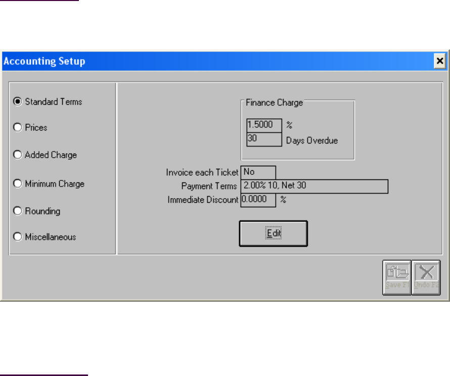 Accounting-->Setup and Miscellaneous Rates-->Standard Terms Screen