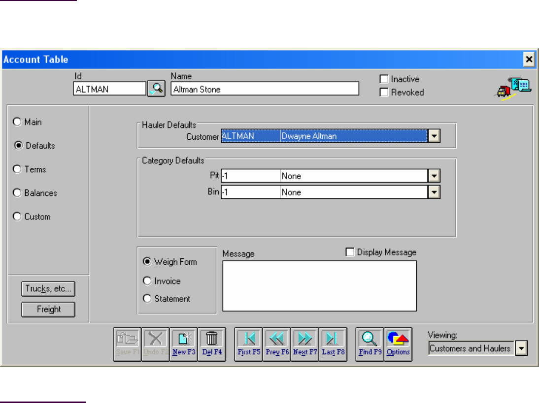The Account Table screens are used to add, modify or delete accounts (bill-to and hauler) in the database.