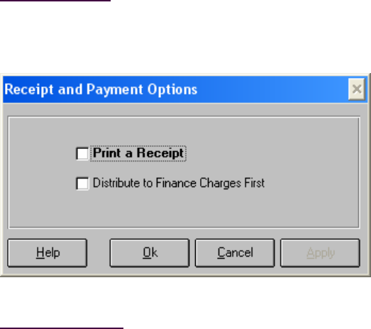 The Receipt and Payment Options screen allows you to set parameters that alter the behavior of the