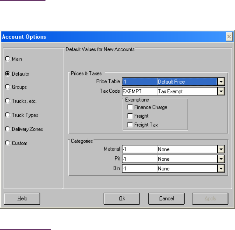 Admin-->Accounts-->Options Button-->Defaults Radio Button