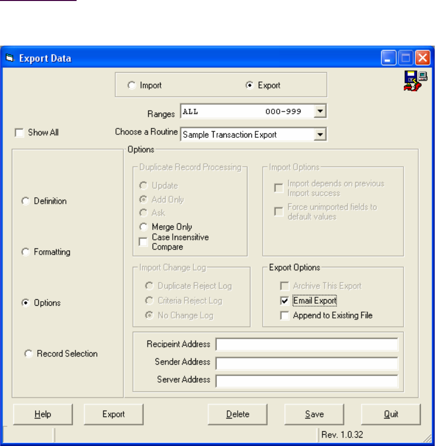 This screen allows you to select options that control the behavior of the import/export.