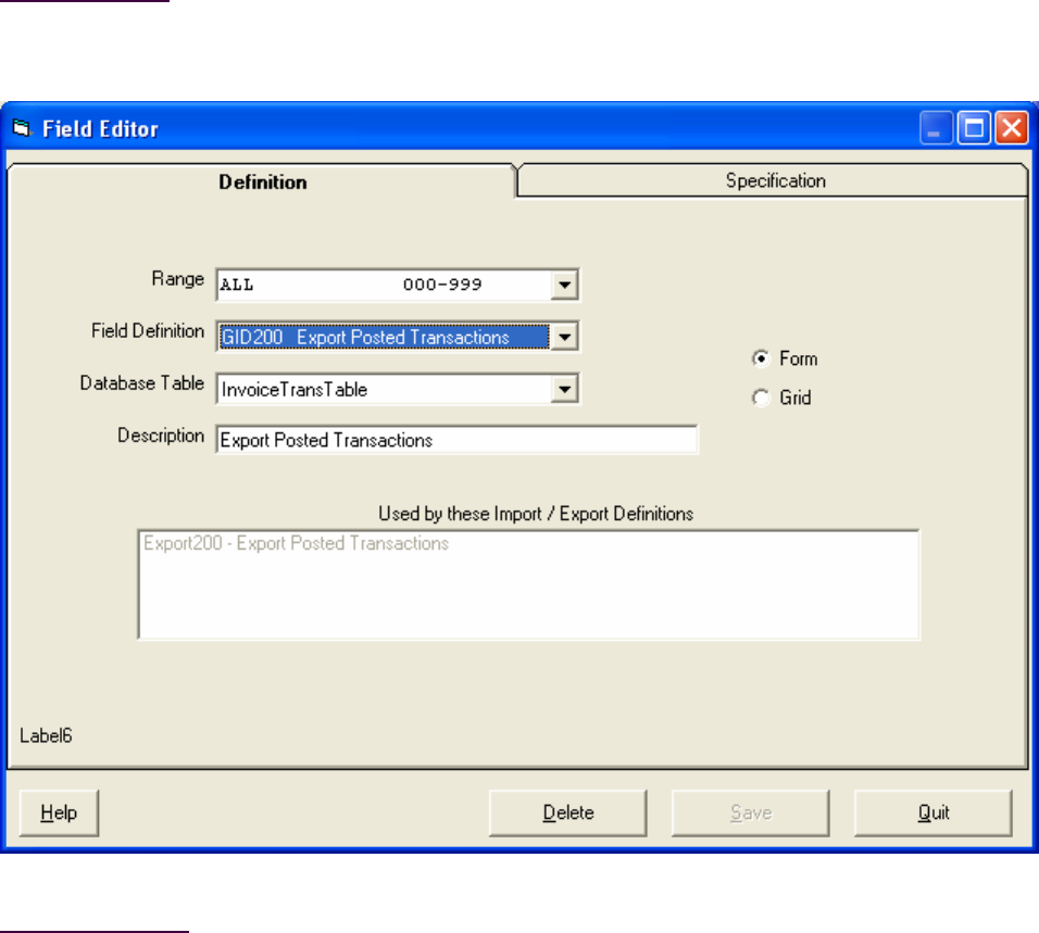 group. These groups are identical to those that appear in the Import/Export Definition screen.