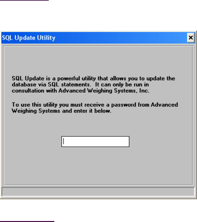 Enter the password supplied by Fairbanks Scales to gain access to the SQL Update screen.