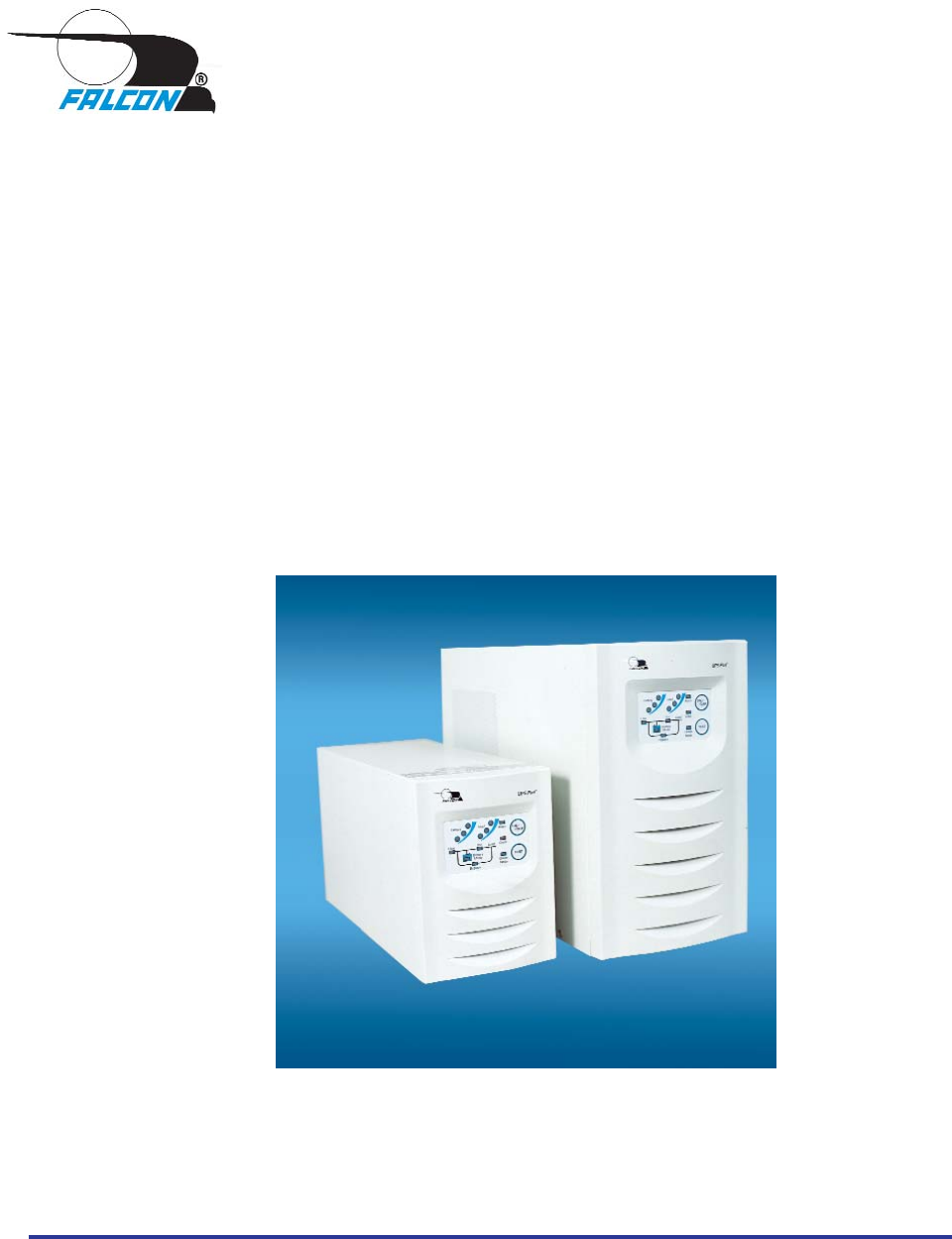 OWNER'S OPERATING MANUAL Uninterruptible Power Supply Models: SG800-1, SG800-2 SG1K-1T, SG1K-2T SG2K-1T, SG2K-2T, SG2K-2TXI SG3K-1T, SG3K-2T, SG3K-2TX Detailed SG Series product specifications are available in PDF format at www.falconups.com FALCON® Electric Inc., 5106 Azusa Canyon Rd., Irwindale, California 91706, (626) 962-7770, Fax 626-962-7720, Email: sales@falconups.com 2003 Falcon® Electric Inc. All rights reserved. All other brand names and trademarks are the property of their respective owners.
