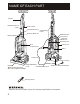 NAME OF EACH PART REAR FRONT Handle Release Button C Suction Hose Release Button A Cord Storage Hooks Release Button B Carrying Handle ON/OFF Switch Crevice Tool Release Button D Upholstery Tool Dust Compartment Filter Cover Wand Dusting Brush Power Cord Power Cord Plug Height Adjustment Headlight Lever Handle Release Lever Set the ON/OFF switch to " ON " to light the headlight. Rug/Floor (Tools) SELECTOR Cleaning Utensil Operate vacuum cleaner only at the voltage specified on name plate.