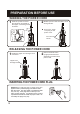 USING THE VACUUM CLEANER ON/OFF SWITCH Start or stop vacuum cleaner by pushing on the switch. ADJUSTING THE HANDLE The handle of this vacuum cleaner can be set to one of three positions -Upright, Normal or Parallel. Place your foot on handle release lever as shown and pull back on the handle until it releases from its upright position. Handle Release Lever Upright position Normal position The handle is normally locked in this position for storage or when using the attachments.