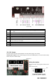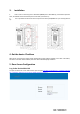 (Picture III) Item 1 2 3、5 4、6 7 8、9 10 12 13 14 Description Internet Port: Standard RJ45 port,10/100M Adaptive,suggest use CAT5 or CAT5E line. Power Adaptor:12V/1A input,left port is “+”,right port is “-” Door Exit Switch:To connect indoor exit button External Switch/Door Lock:To connect door lock, alarm etc. Wiegand Port: To connect wiegand card reader. Door sensor detection:to detect the door open/close status. To mix device voice & remote call voice, then release them together.