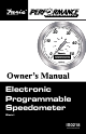 has passed. The interval can be either or both mileage and hours. A seven digit display readout displays the total mileage, the trip mileage, hourmeter or maximum saved speed (cleared by pressing and holding the push-button for 4 seconds while in the maximum speed display), the menu items are scrolled by pressing and releasing the push-button on the speedometer. If a service interval has been passed the display will show a service message (one time only).
