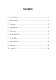 Content 1. Introduction ................................................................................ 1 2. Main function .............................................................................. 2 3. Hardware .................................................................................... 2 4. Specification ................................................................................ 3 5. Operation .................................................................................... 3 6.