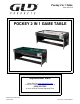 GLD Products Pockey 2 in 1 Table Item 64-1010 Congratulations and THANK YOU for purchasing the Pockey 2 in 1 Game Table. You have chosen a product that should provide years of entertainment. To assist you with customer service and warranty claims, staple your receipt to the inside cover, then keep this manual in a safe place for future reference. GLD Products S84 W19093 Enterprise Drive Muskego, WI 53150 USA 1-800-225-7593 Fax: 1-800-841-6944 Email: gld@gldmfg.com Web: www.gldproducts.